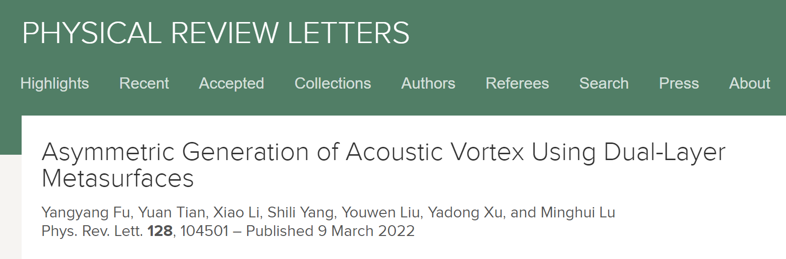 近日,动漫疯 应用物理系伏洋洋副研究员和刘友文教授与苏州大学的徐亚东教授、南京大学的卢明辉教授等合作,利用双层超构表面中的单向轨道角动量转化机制,首次提出一种涡旋声场非对称产生的新现象和物理机制。相关成果以 “Asymmetric generation of acoustic vortex using dual-layer metasurfaces”为题发表在物理学权威期刊《Physical Review Letters》上。伏洋洋副研究员为论文的共同通讯作者和第一作者,苏州大学的徐亚东教授和南京大学的卢明辉教授为论文的共同通讯作者。
