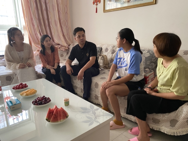 在大三学生高璐婷家中,陈修文介绍了当前学院发展和学生成长总体情况,了解到该生现阶段存在学习时长不算短、但学习效率不太高的问题,他根据学生叙述的具体情况分析了原因,指出需要充分发掘内生学习动力,有主动性才能提高效率,建议学生多参加学校、学院组织的实习实践、校友分享、升学就业指导等活动,尽快确立好学习成长目标和方向,增强动力、提高效率。辅导员邢临川将学生在校期间的学习、生活、学生工作表现向家长进行反馈。高同学的母亲对学院老师家访一行表示非常感谢,表示“学校和学院对学生都非常关心,孩子爸爸在南京工作,平时也会注意跟孩子多交流,家里在暑期里也会持续督促孩子复习和预习专业课,和学校一起帮助孩子成长成才。”
