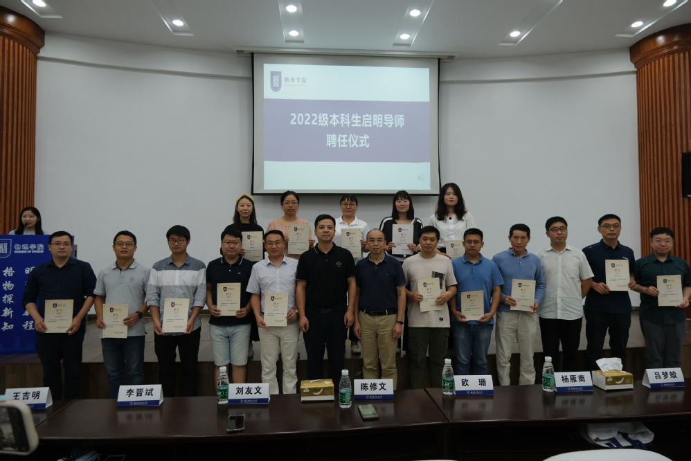 学院在新生入学前,通过院系推荐为新生遴选了15位启明导师,通过和新生小宿舍结对的方式,从思想教导、专业辅导、学术引导、身心疏导等方面给新生全面深入的关心和指导。在导师见面会上,学院领导们为启明导师们颁发了聘书,新生代表们也上台为导师送上了自己的祝福。师生从游,启智润心,新生们在启明导师的带领和陪伴下即将开启一段探索物理的奇妙之旅。