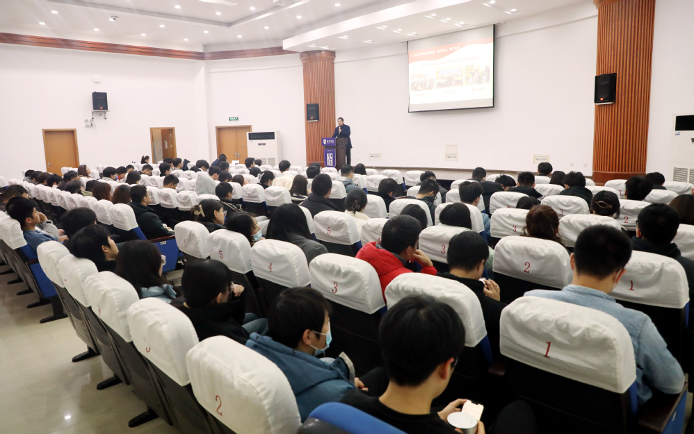 陈修文以《大局出发 小处着手 学会爱国》为题向全体学生党员及学员做专题培训报告,从习近平总书记在党的二十大报告中对青年人的殷切嘱托切入,围绕树立正确的价值观念、养成良好的行为习惯、继承民族的优良传统、学会辩证的分析问题四个方面,将一系列生动鲜活的案例和青年学生的学习生活实际相结合,启发同学们从小事做起,敢于担当、勇于负责,理性的表达爱国热情,给在场全体同学带来了一场深刻的政治教育和精神洗礼。在报告最后,陈修文勉励大家继续认真、深入学习党的二十大精神,全方位提升自己的政治素养和综合能力,不断加强政治判断力、政治领悟力、政治执行力,同时保持良好的生活习惯,不断提高和完善自我,真正成为同学中的优秀榜样。