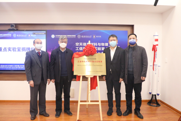 (祝世宁、顾冬冬、陈修文、刘友文共同为“空天信息材料与物理”工信部重点实验室揭牌)