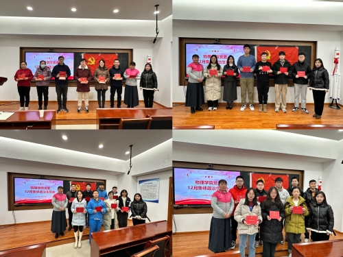 活动第一项议程为12月集体政治生日会。首先,在学院党委副书记欧珊带领下,全体参会党员庄严肃穆地共同重温入党誓词,回顾入党初心。接下来,学院党委副书记欧珊、副院长阚彩侠共同为30位师生党员送上政治生日纪念卡。