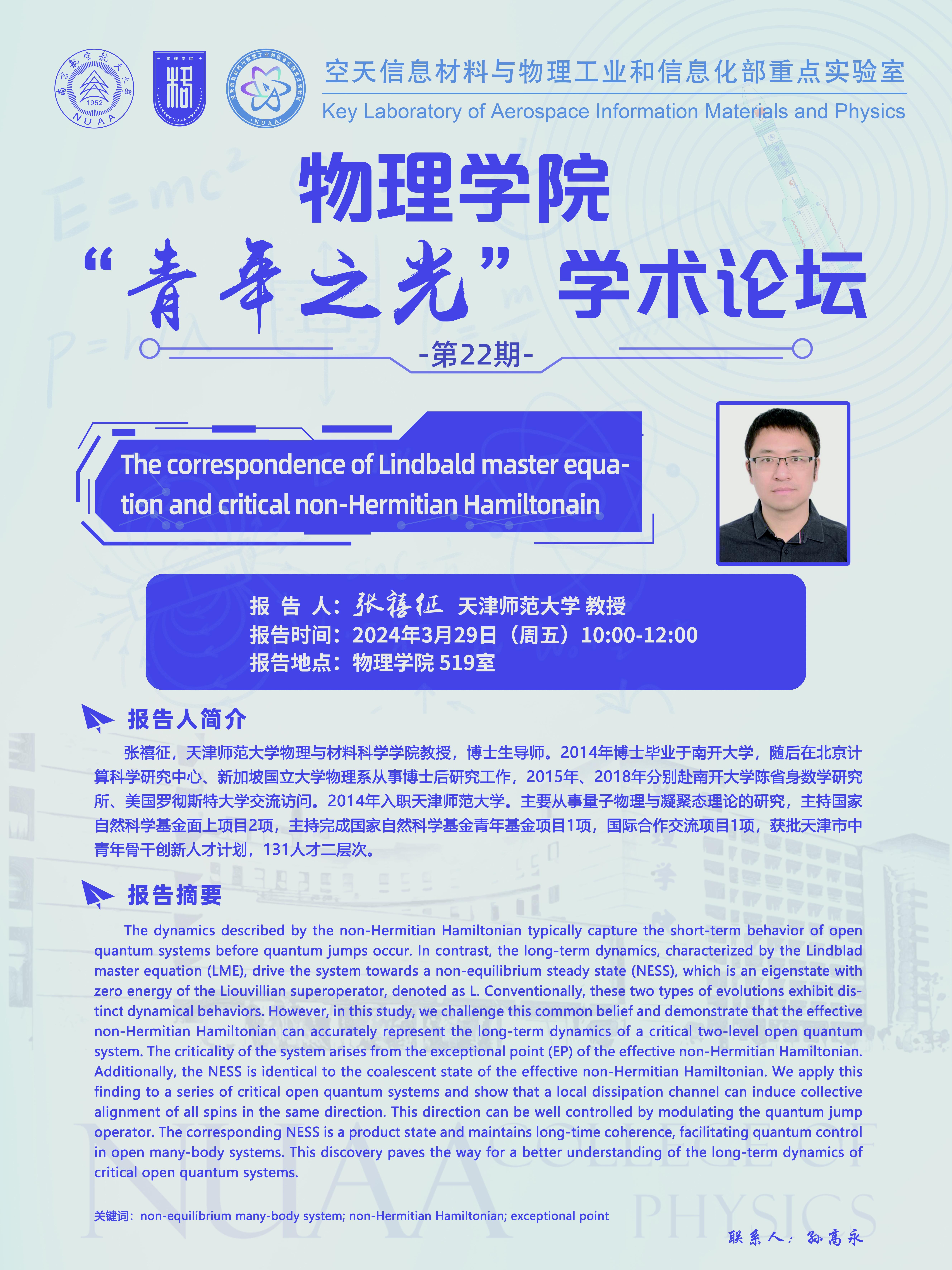 审核:The correspondence of Lindbald master equation and critical non-Hermitian Hamiltonain