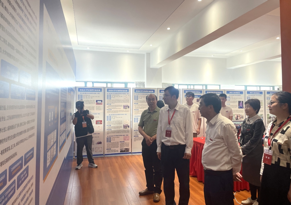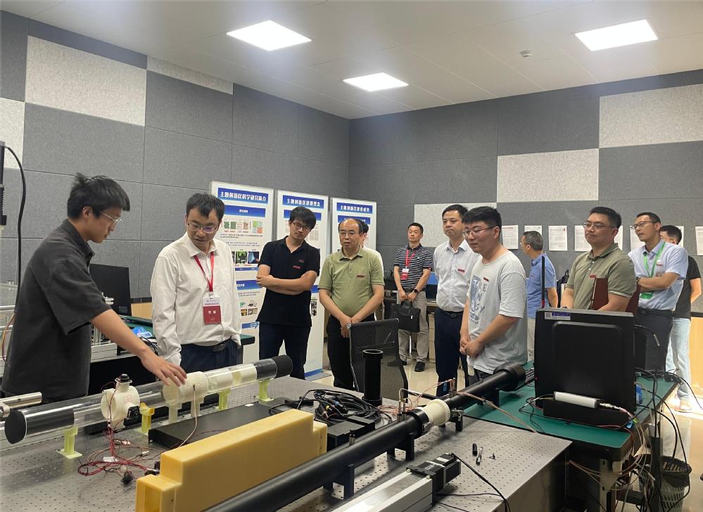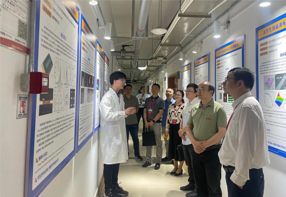 专家一行首先参观了“声场功能调控及应用”“紫外日盲探测”主题创新区及学院本科教育教学成果展厅。