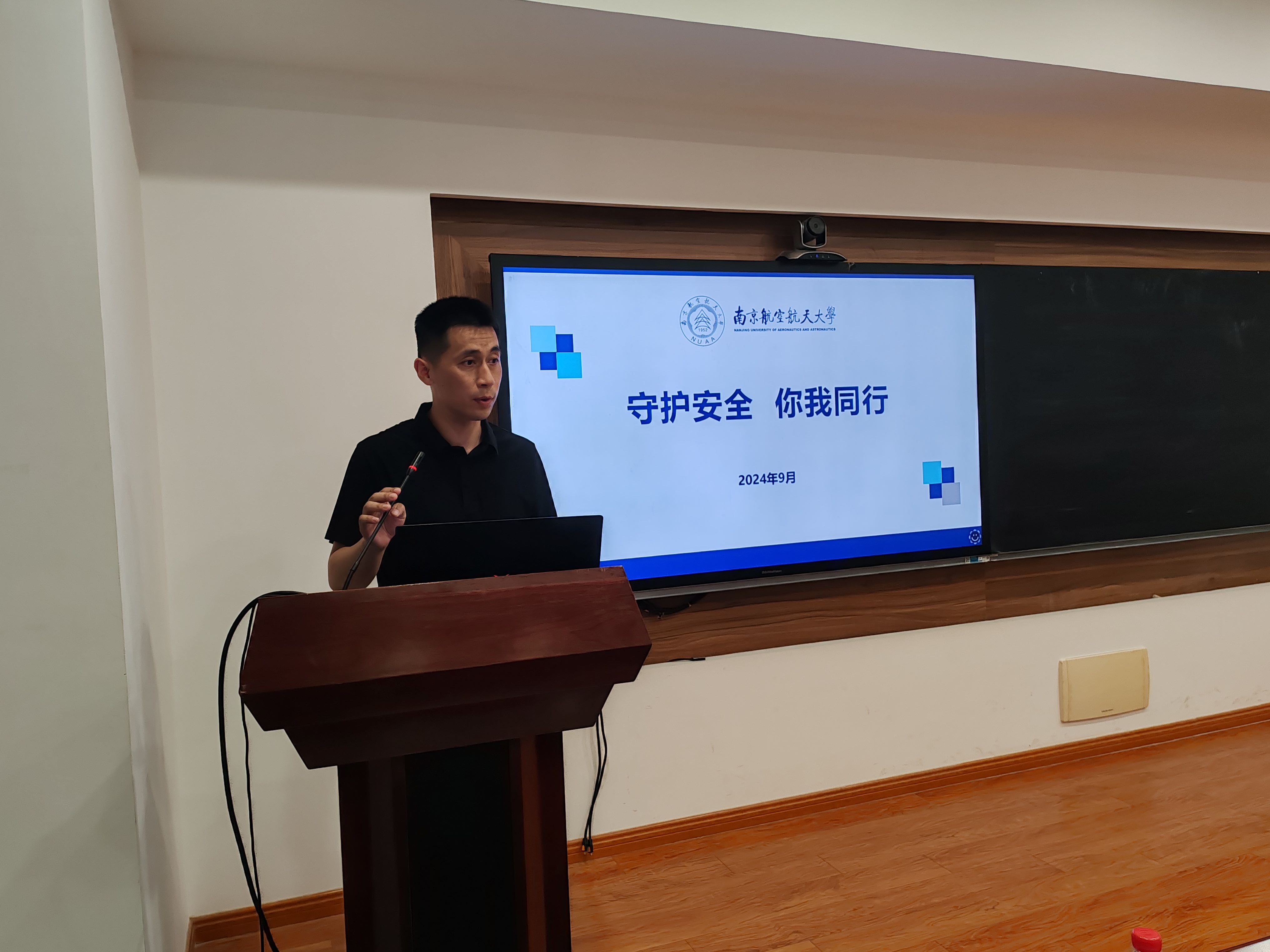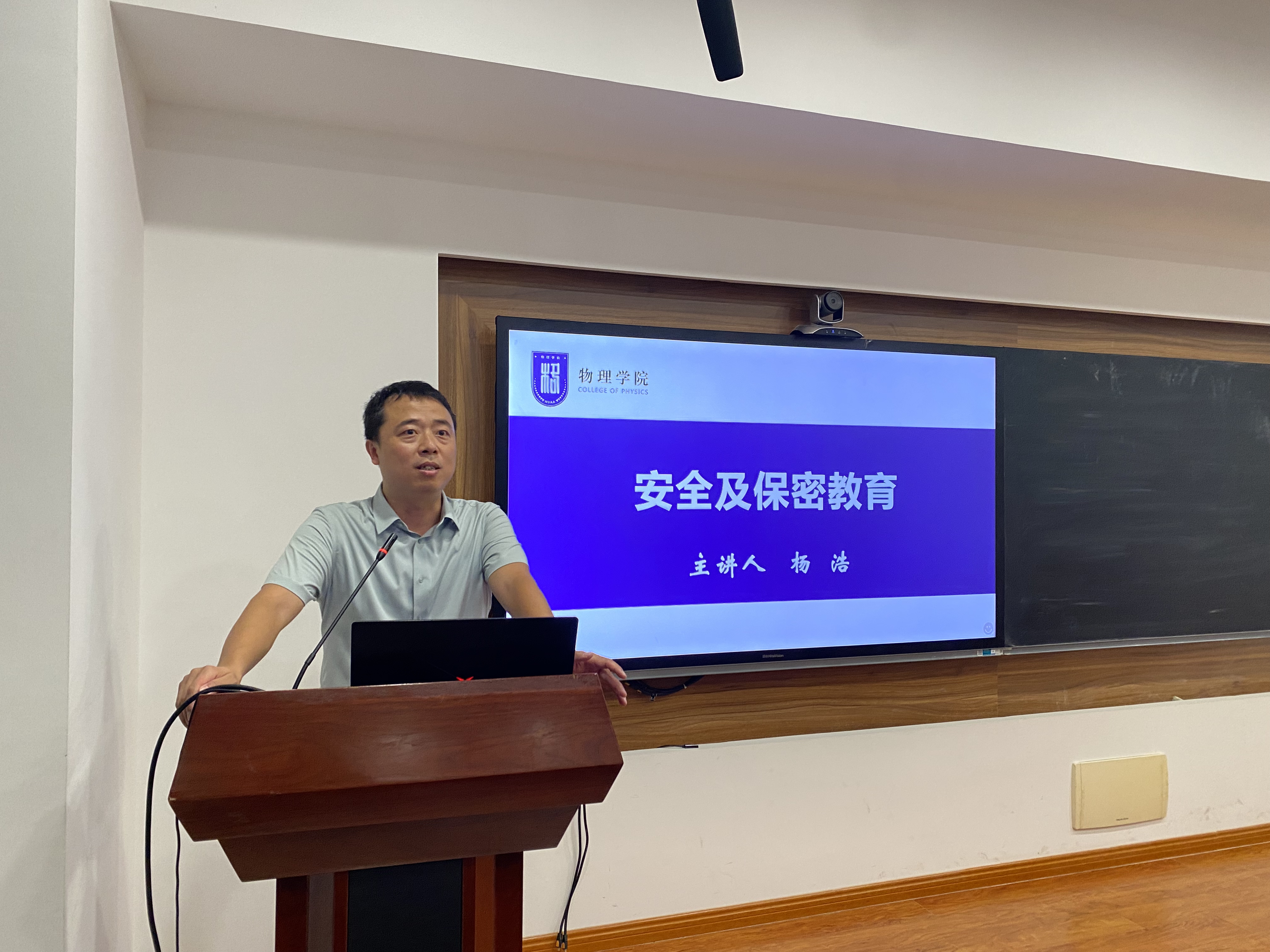 副院长杨浩通过系统的理论知识和大量的鲜活实例,从 “事故案例与原因”、“安全管理基本原理”、“安全风险”、“安全提示”、“保密义务”“保密须知”保密提醒”等方面对实验室中的安全管理以及研究生阶段的保密要点进行了全面细致的讲授,给大家了一堂印象深刻、发人深省的安全及保密教育课。辅导员梁欢围绕校园安全提醒、校园安全服务、校园安全应急三个方面提醒同学们要时刻树牢安全意识、紧绷安全之弦。现场的同学纷纷表示受益匪浅。