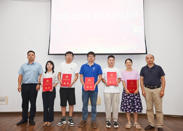 随后,大会召开了2022-2024年度党内评优表彰大会。欧珊宣读了学院《关于表彰2022-2024年度优秀共产党员、优秀党务工作者和先进基层党支部的决定》,党委书记陈修文、院长刘友文为获得2022-2024年度校级及学院党内表彰的优秀共产党员、优秀党务工作者、先进基层党支部依次颁奖。