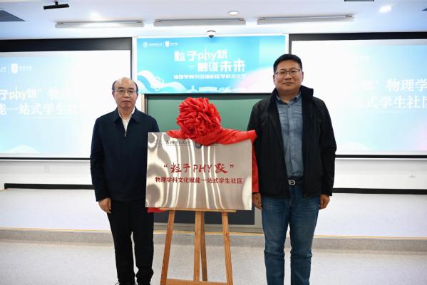 刘友文、贡海俊为“粒子phy跃”物理学科文化赋能一站式学生社区揭牌。一站式学生社区坚持党建引领、文化浸润,打造学院在天目湖校区的全员育人新空间,师生共同探索物理奥秘,感悟物理文化,领略物理魅力,品味物理之美。