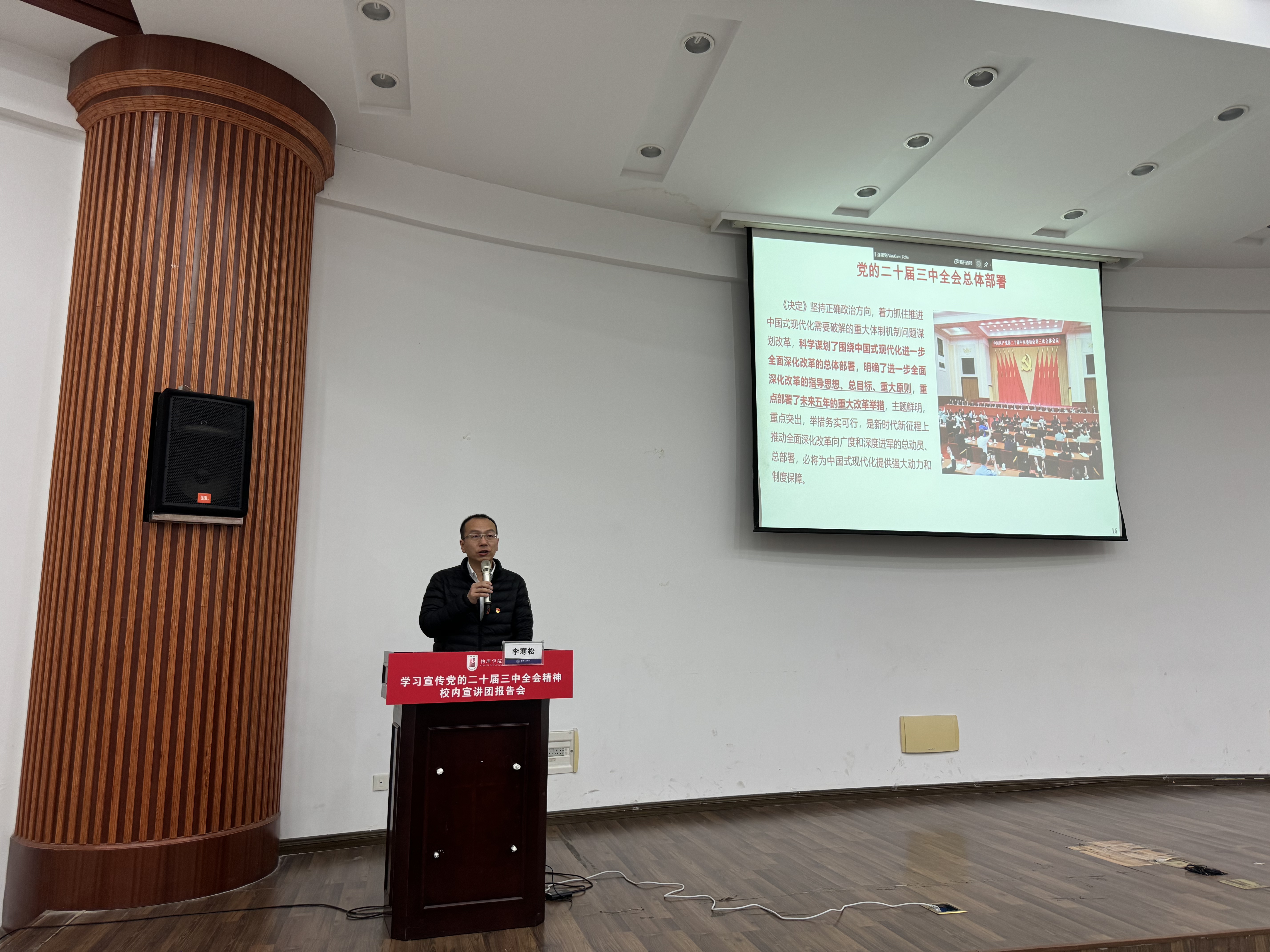 为深入学习贯彻党的二十届三中全会精神,根据校党委统一部署,11月27日,动漫疯 举行学习宣传党的二十届三中全会精神校内宣讲团报告会,邀请校内宣讲团成员、机电学院教授李寒松作专题辅导报告。学院领导班子成员、全体师生党员、积极分子参加报告会,报告会由学院副院长阚彩侠主持。