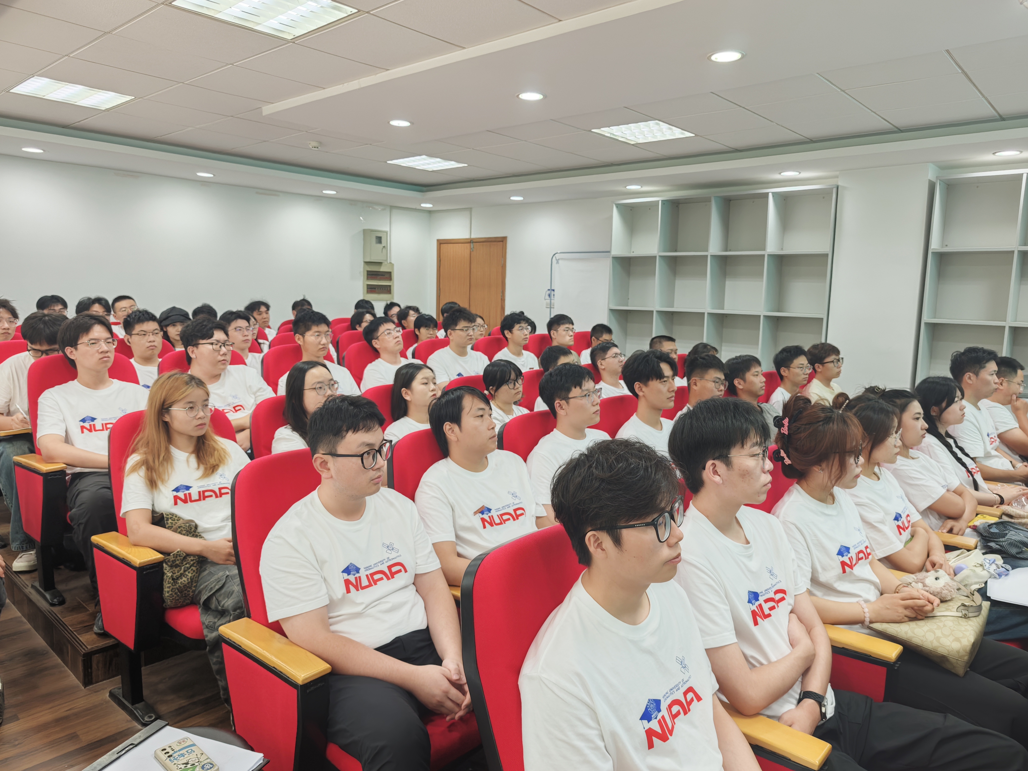 朋辈交流环节,物理学专业2023 级硕士程冬平结合自身课程学习与科研入门经历,分享了研究生学习中的实用技巧,帮助新生快速适应研究生学习节奏;物理学专业2022级博士李潇围绕科研攻坚话题,讲述了自己在实验瓶颈期的调整方法,鼓励新生保持耐心、及时与导师同学沟通;物理学专业2024级博士生、“先锋计划”硕博实践团成员王书皓分享了暑期在国防科研单位的实践见闻,号召新生扎根基础研究,以实际行动助力国家科技自立自强。
