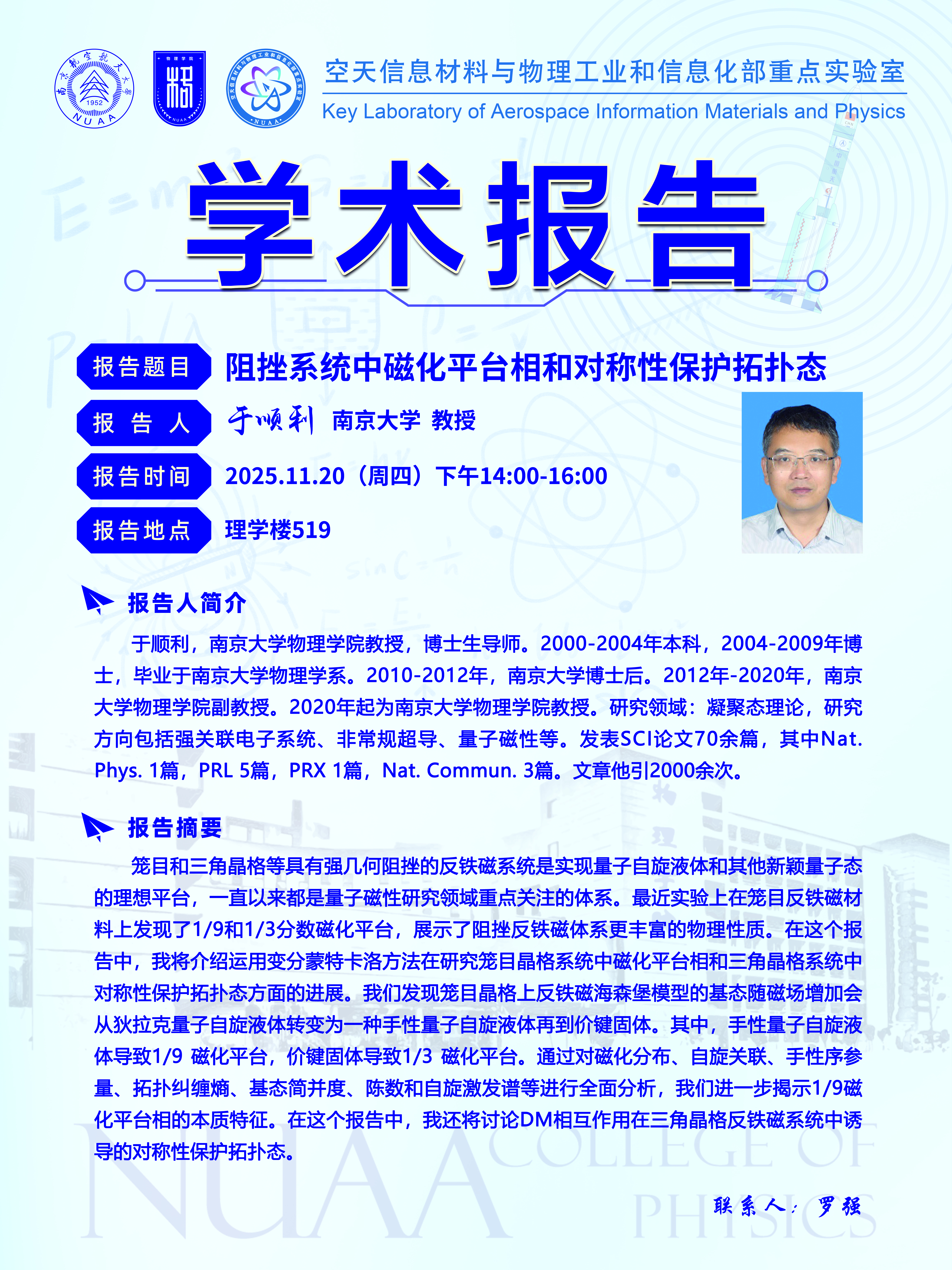 审核:阻挫系统中磁化平台相和对称性保护拓扑态