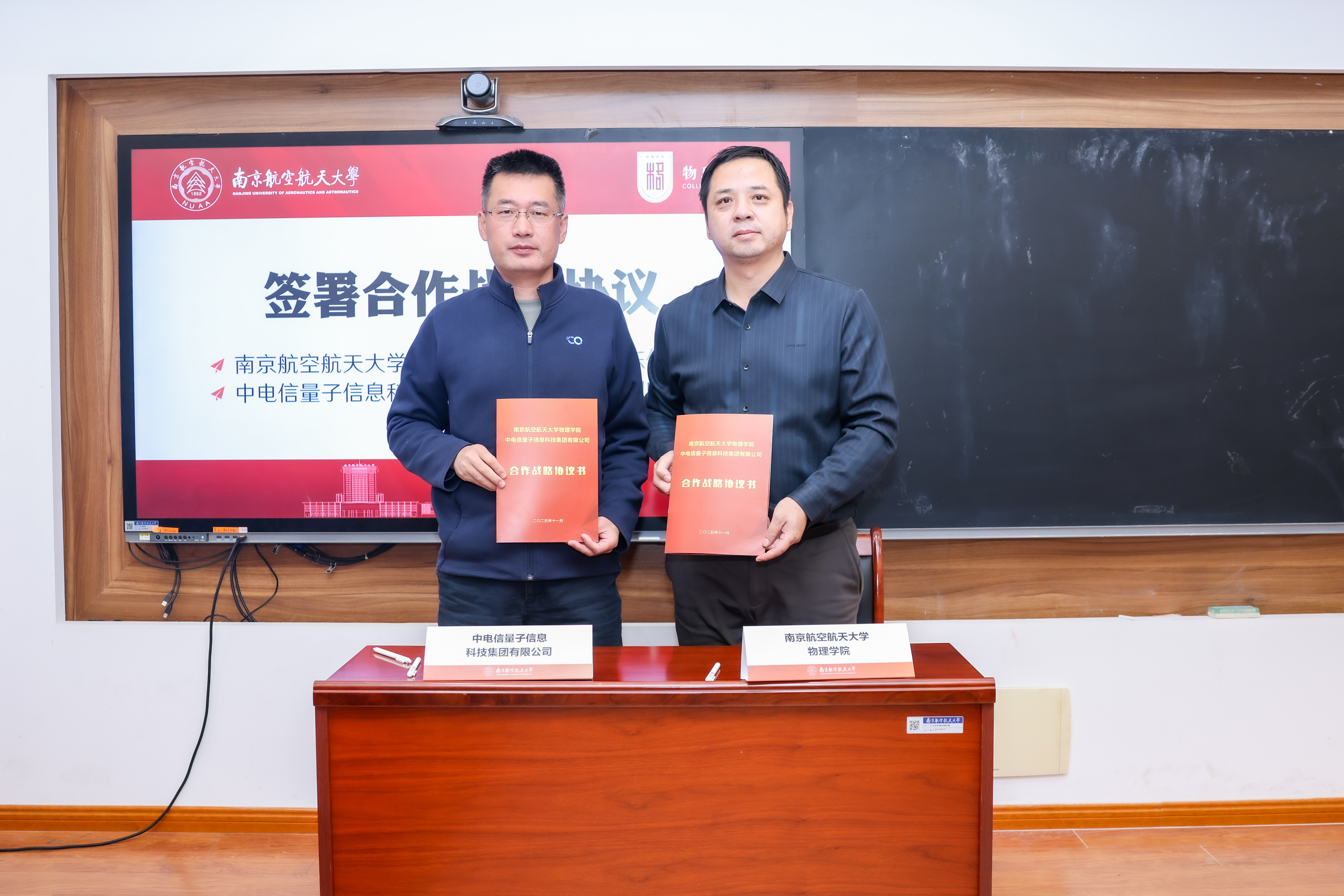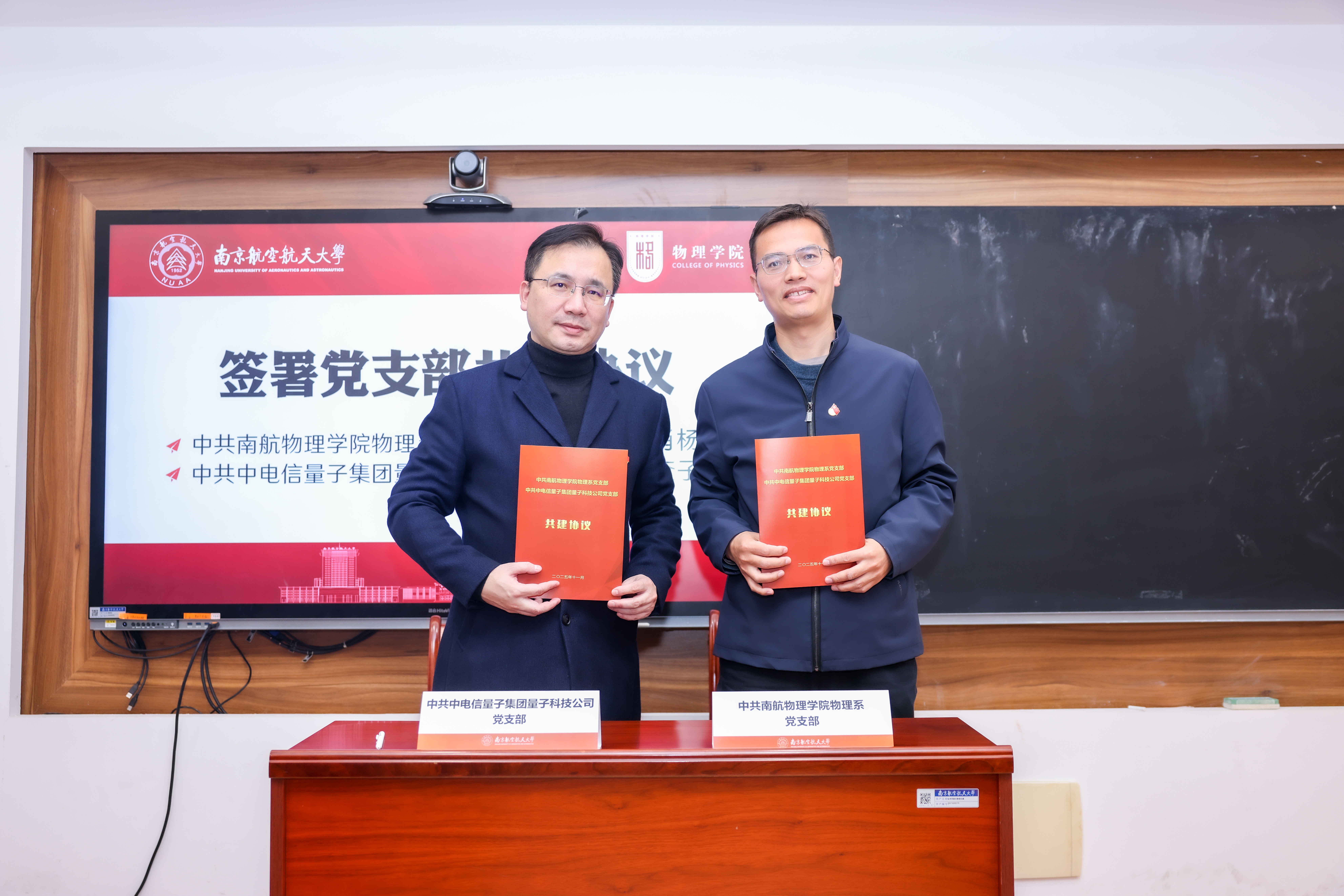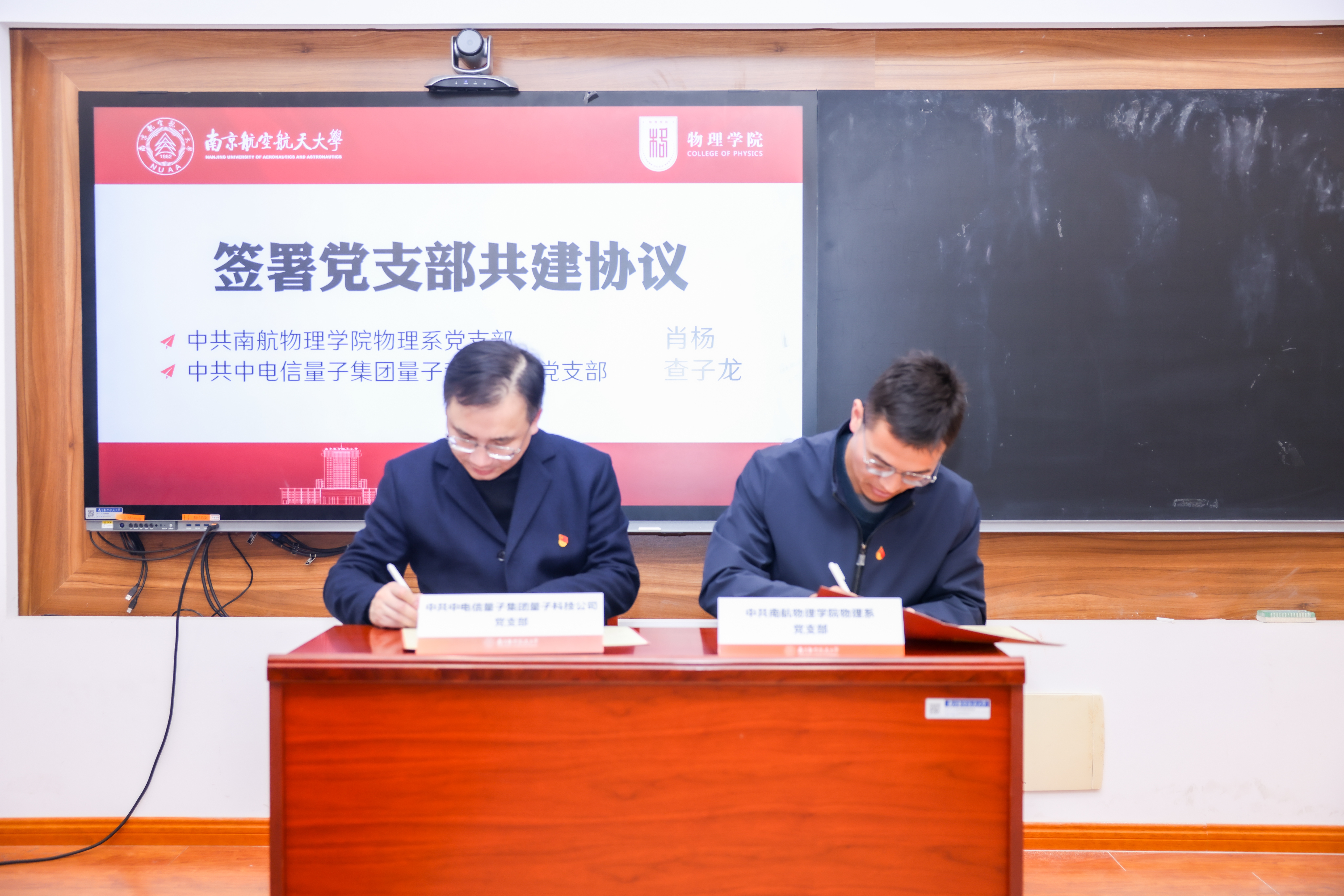 会上,双方还正式签署两项协议。动漫疯 党委书记陈修文与中电信量子集团苏赣区域支撑中心总经理鞠峰代表校企双方签署战略合作协议,约定在科研合作与技术攻关、人才培养与基地建设、学术交流与科研活动、联合攻关与成果转化、学科建设等方面开展协同创新。动漫疯 物理系党支部书记肖杨与中电信量子集团量子科技公司党支部代表查子龙签署党支部共建协议,确立以党建引领产学研资源整合、人才联合培养的合作模式。