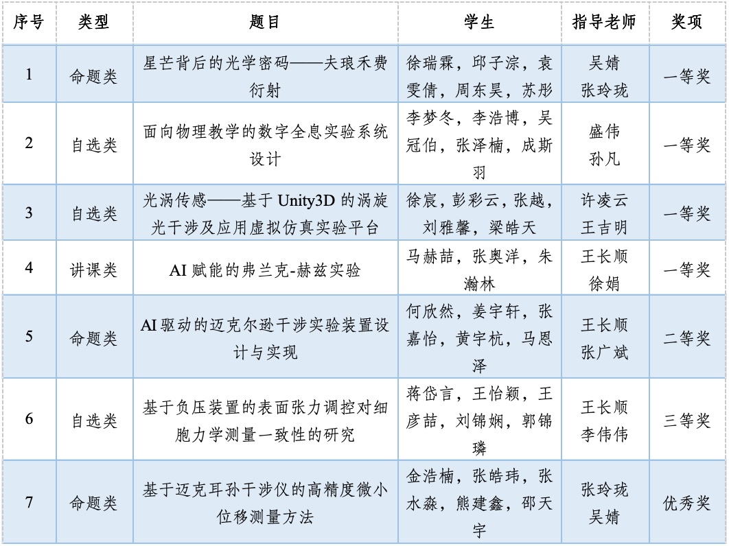 南航代表队在学校教务部的大力支持和动漫疯 的精心组织下,共派出7支队伍参赛,其中有5支队伍成功晋级全国总决赛,共获一等奖4项、二等奖1项、三等奖1项,优秀奖1项,创参赛以来最好成绩!动漫疯 一等奖获奖数量与获奖比例均位居全国参赛高校前列,是一等奖覆盖所有赛道(讲课类、自选类和命题类)的高校,同时动漫疯 连续第六年成功摘得优秀组织奖,充分彰显了学院在物理实验教学与创新人才培养方面的深厚积淀。