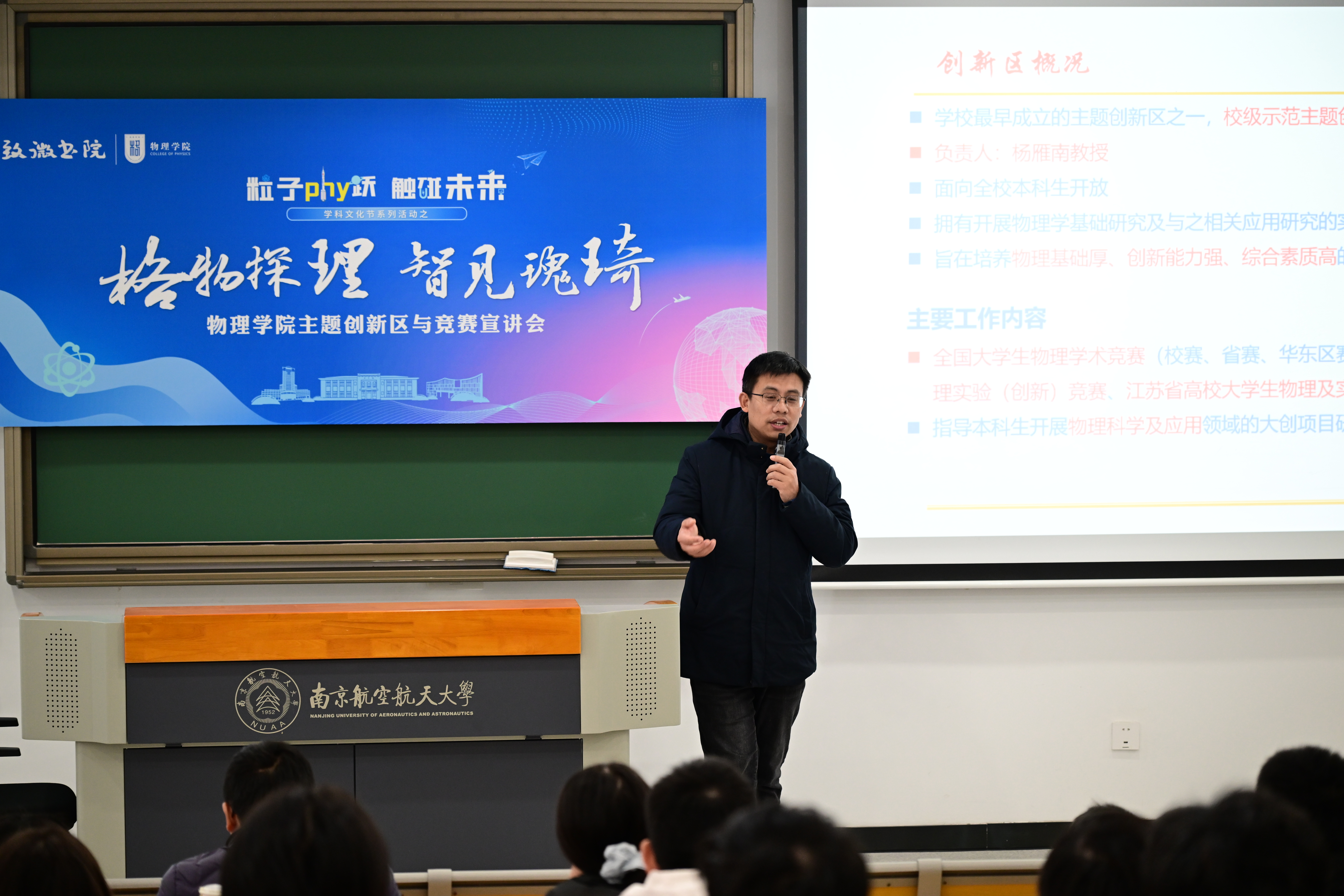 第四届“启智逐梦,智汇青春”天目湖校区大学生科创节于近日盛大开幕,为激发同学的科研兴趣,助力大一同学及时了解动漫疯 主题创新区情况,掌握四大学科竞赛核心信息,顺利开启科创征程,动漫疯 联合致微书院于12月2日在天目湖校区举办主题创新区与物理竞赛专场宣讲会。牧星学院致微书院院长文杰、动漫疯 副院长阚彩侠及学院100余名师生参加本次活动。活动由动漫疯 教务员杨一冉主持。