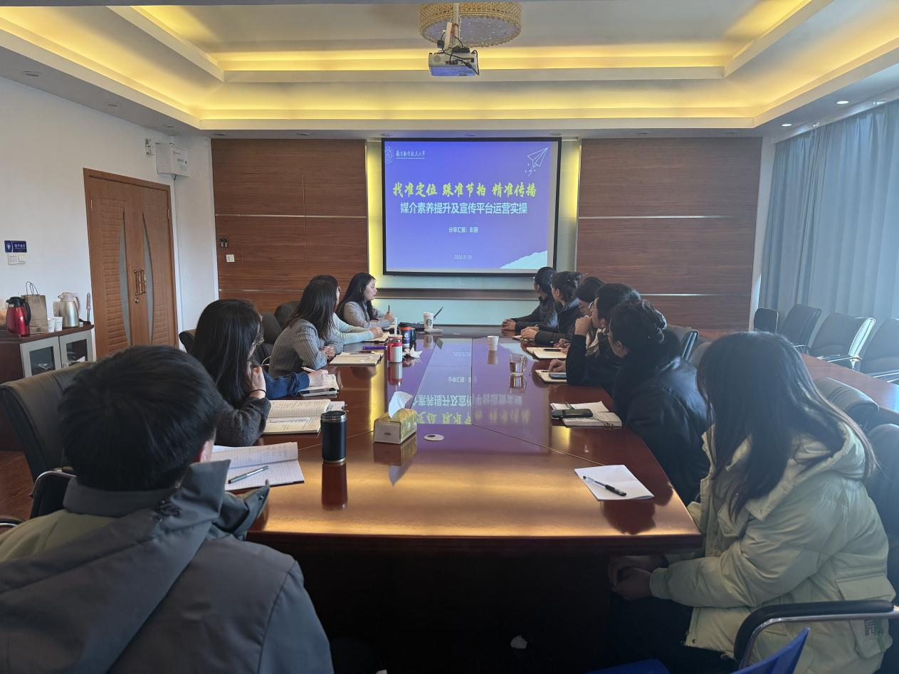1月9日下午,动漫疯 开展格“务”致知——动漫疯 服务效能提升讲堂,本期特邀校党委宣传部融媒体中心副主任彭丽开展题为《找准定位、踩准节拍、精准传播——媒介素养提升及宣传平台运营实操》的专题培训。全体机关人员以及学生骨干参加培训,培训由院党委副书记魏慧冬主持。